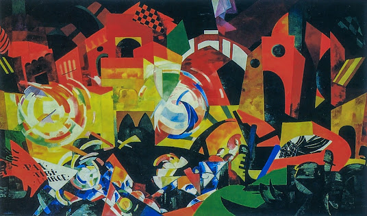 les préceptes futuristes, en les conjuguant avec sa base cubiste. Elle dénomme